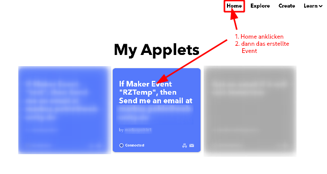 Wir hatten ja anfangs gesagt, dass wir die Alarmierung per Email durchführen wollen. Jetzt könnten wir dem Arduino ja beibringen, selbst eine Email zu generieren. Wozu aber die Mühe? Wir bedienen uns hier eines Services im Internet, über den wir, abhängig von bestimmten Ereignissen, Aktionen auslösen lassen können. Und bei solchen Aktionen kann es sich z.B. um das Versenden einer Email handeln.